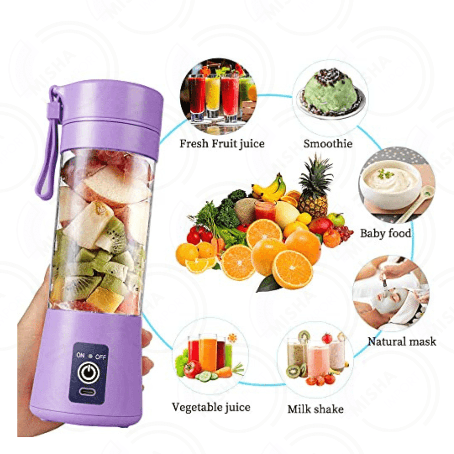 Licuadora multifuncional se puede utilizar para hacer batidos, jugos lo que te permite disfrutar de retención de nutrientes frescos y tiempo libre maravilloso cuando trabajas, haces deporte, conducción, viajes, camping, picnic. Fácil de usar y limpiar.