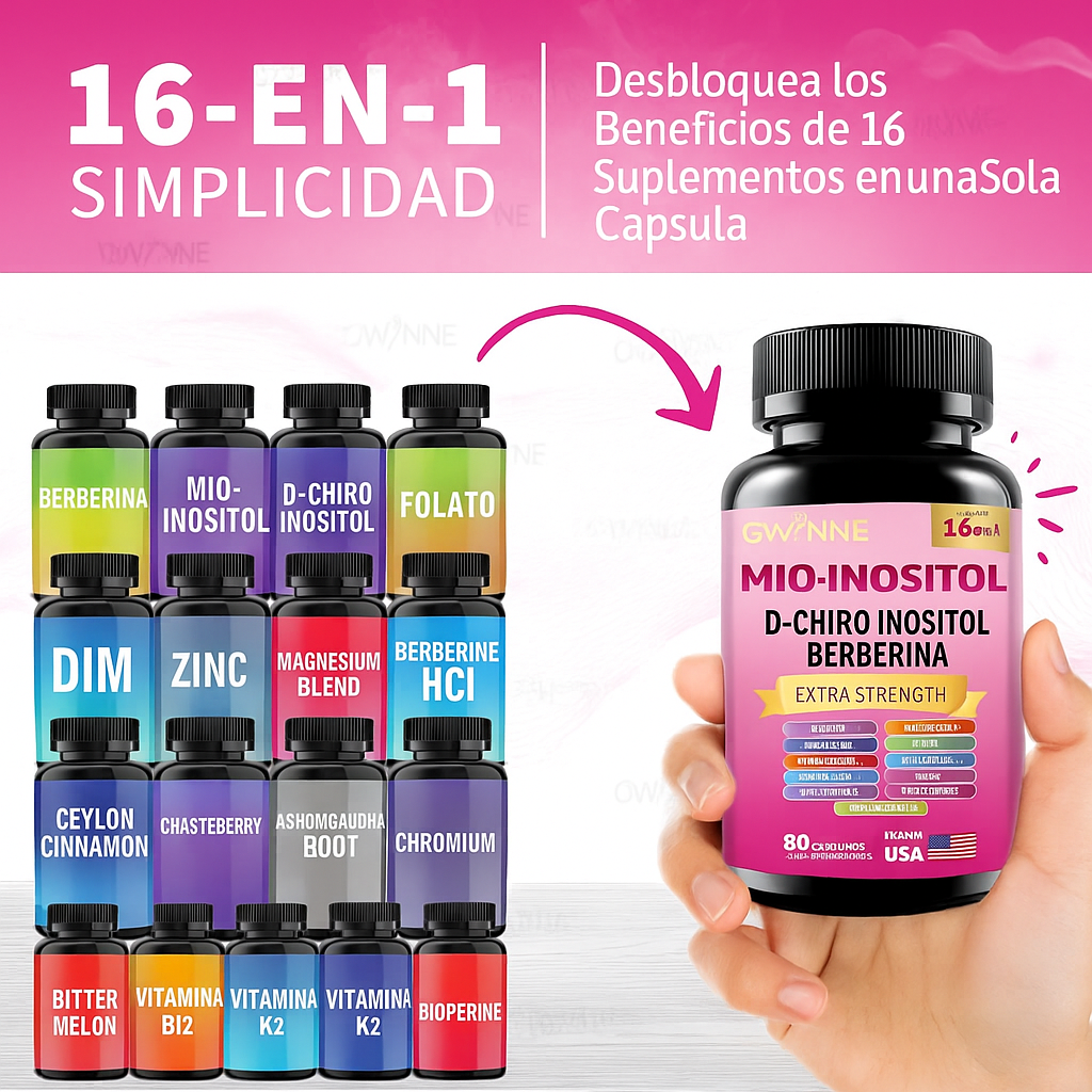 Myo-Inositol + D-Chiro + Magnesio + D3, B12 y K2 para resultados visibles.